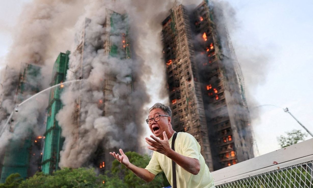 Mία φωτογραφία που συμβολίζει όλο τον πόνο και την απόγνωση για τη φονική πυρκαγιά στους ουρανοξύστες του Χονγκ Κονγκ κάνει…